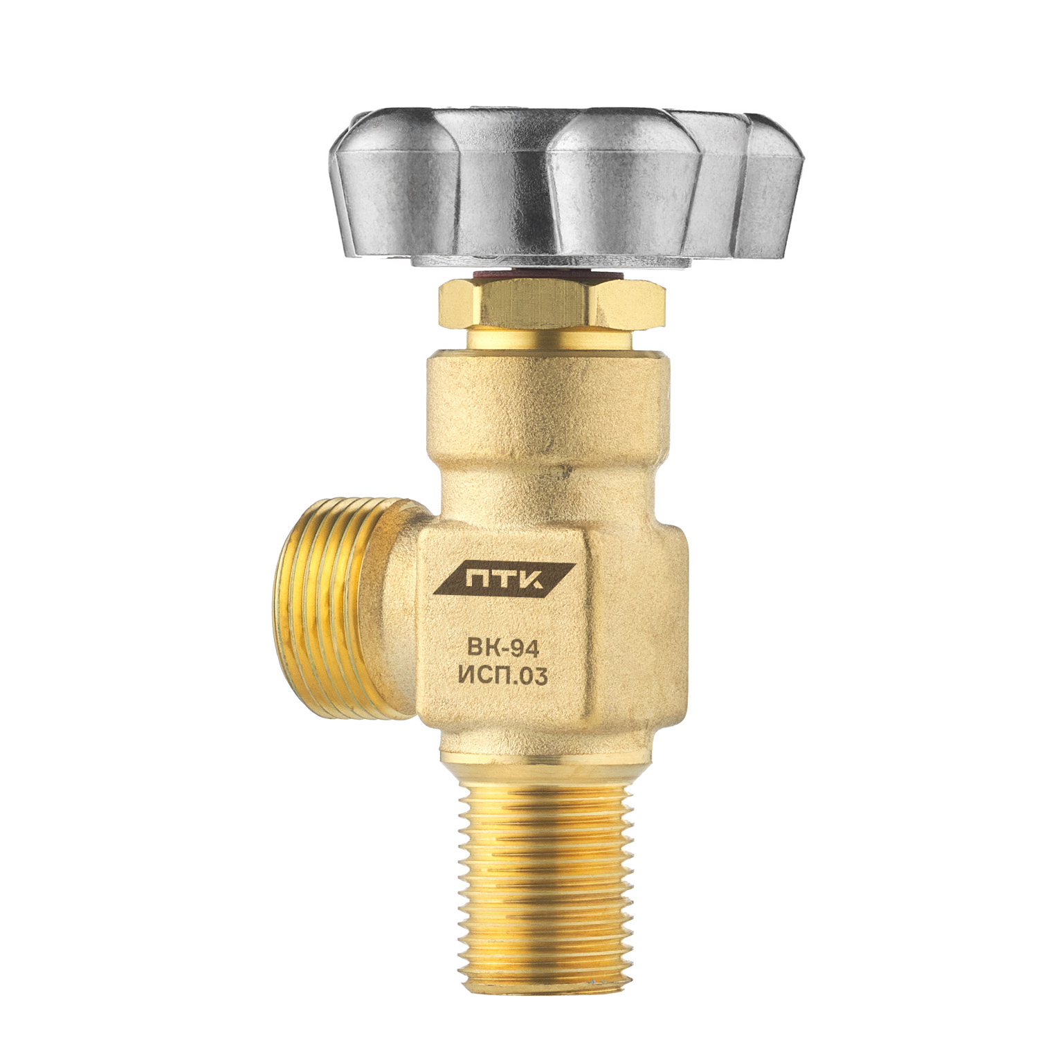 Вентиль баллонный ПТК ВК-94 (исполнение 03) применяется в качестве запорного устройства на кислородных баллонах различных ёмкостей для предотвращения утечки газа и регулировки подачи кислорода. Вентиль можно использовать для баллонов со сжатым воздухом, азотом и другими неагрессивными газами.Вентиль чаще всего применяется для установки на кислородные баллоны ёмкостью от 5 до 40 литров с рабочим давлением не более 20 МПа (200 кгс/см²).Корпус вентиля изготовлен из латуни. Маховик регулировки подачи газа выполнен из алюминия. Присоединительная резьба для установки на баллон - G1/2. Присоединительные размеры бокового штуцера соответствуют ГОСТ 6357 и представляют наружную цилиндрическую резьбу G3/4-В. Резьба шпинделя смазана кислородостойкой смазкой ВНИИНП-283, обеспечивая долговечность и герметичность соединения.Применение гибких мембран гарантирует полную герметичность при любом положении вентиля и продлевает срок его службы.Комплектация:Вентиль кислородный ВК-94 исп. 03 в сборе – 1 шт.Руководство по эксплуатации – 1 шт.